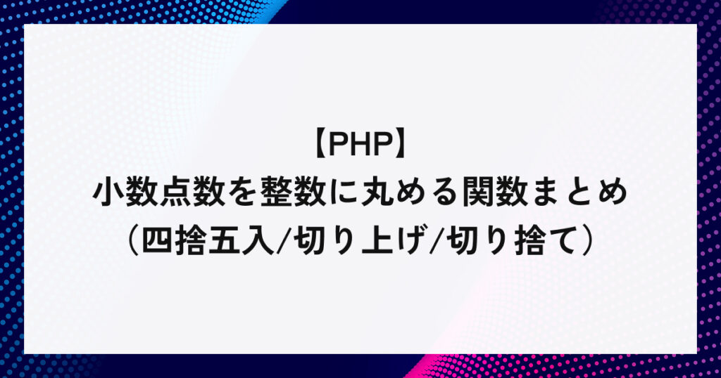 【PHP】小数点数を整数に丸める関数まとめ(四捨五入/切り上げ/切り捨て)